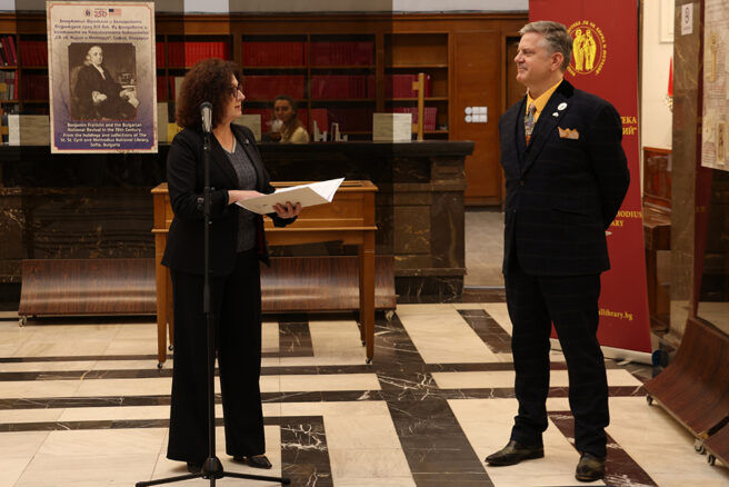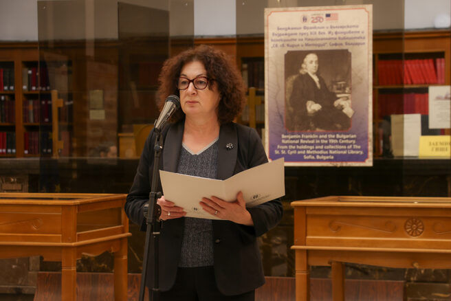 In her opening address, Assoc. Prof. Kalina Ivanova, Director of the National Library of Bulgaria, emphasised Franklin’s lasting impact on the development of the American book trade and libraries. The curator of the exhibition, Assoc. Prof. Hristiyan Atanasov, highlighted Franklin’s aphorisms—short yet powerful expressions of practical philosophy. Maxims such as “Early to bed and early to rise makes a man healthy, wealthy, and wise” closely align with the moral and educational ideals of the Bulgarian National Revival.