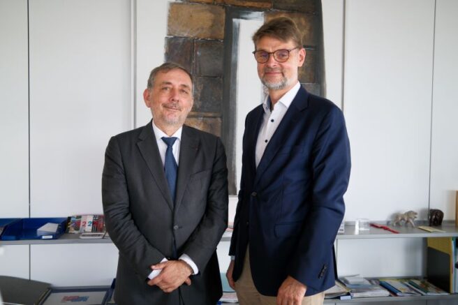 Gilles Pécout, the new President of the National Library of France and newly elected Vice Chair of the Conference of European National Librarians (CENL), visited the Chair, Frank Scholze, at the German National Library in Frankfurt am Main on 4 September 2024.
